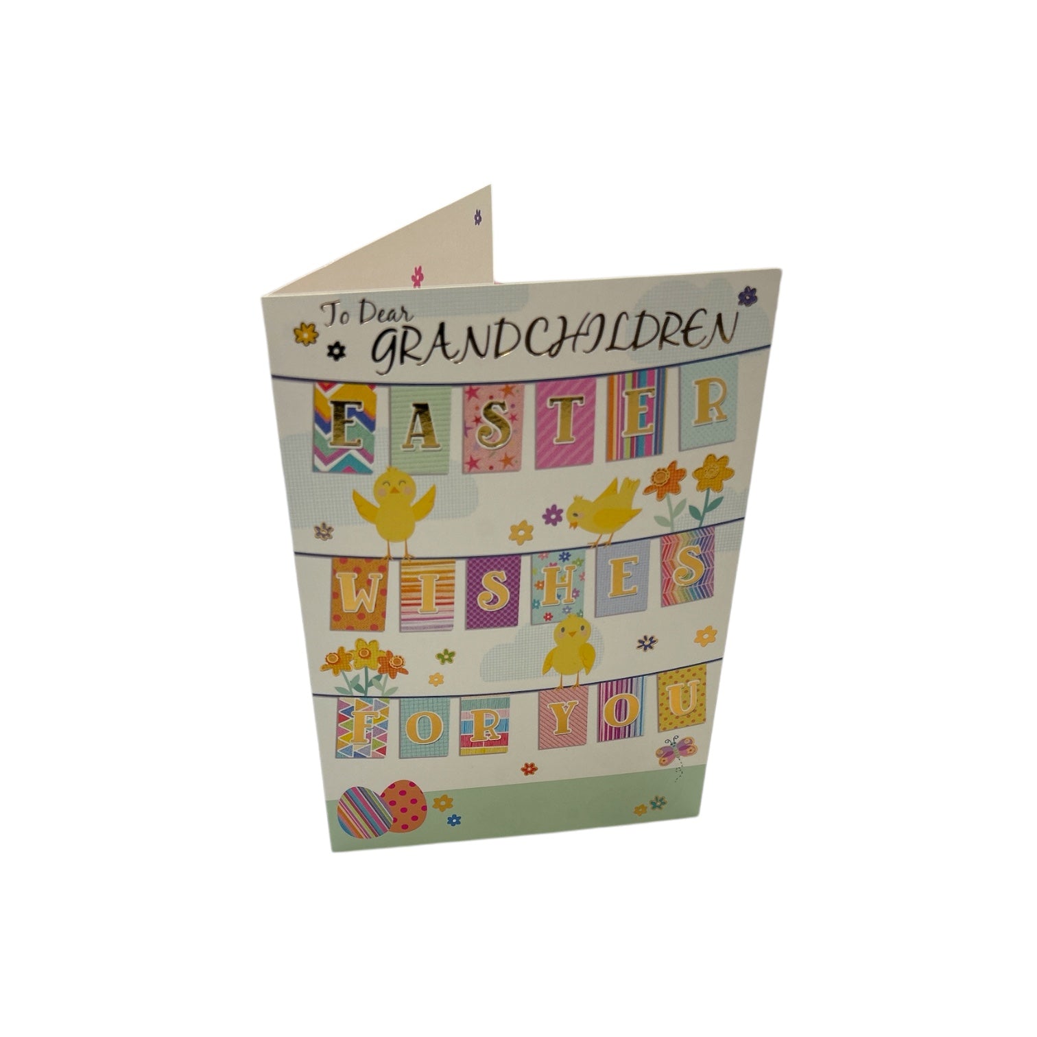 To Dear Grandchildren Vibrant Patterns Bunting Design Easter Card