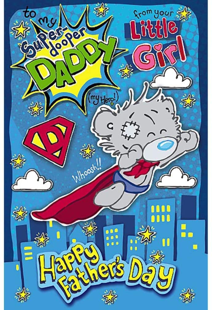 To My Super Dooper Daddy Father's Day Card From Little Girl. Message inside card reads: Have the best and most super Father's Day. (In the history of the universe!). Size: 8" x 5".