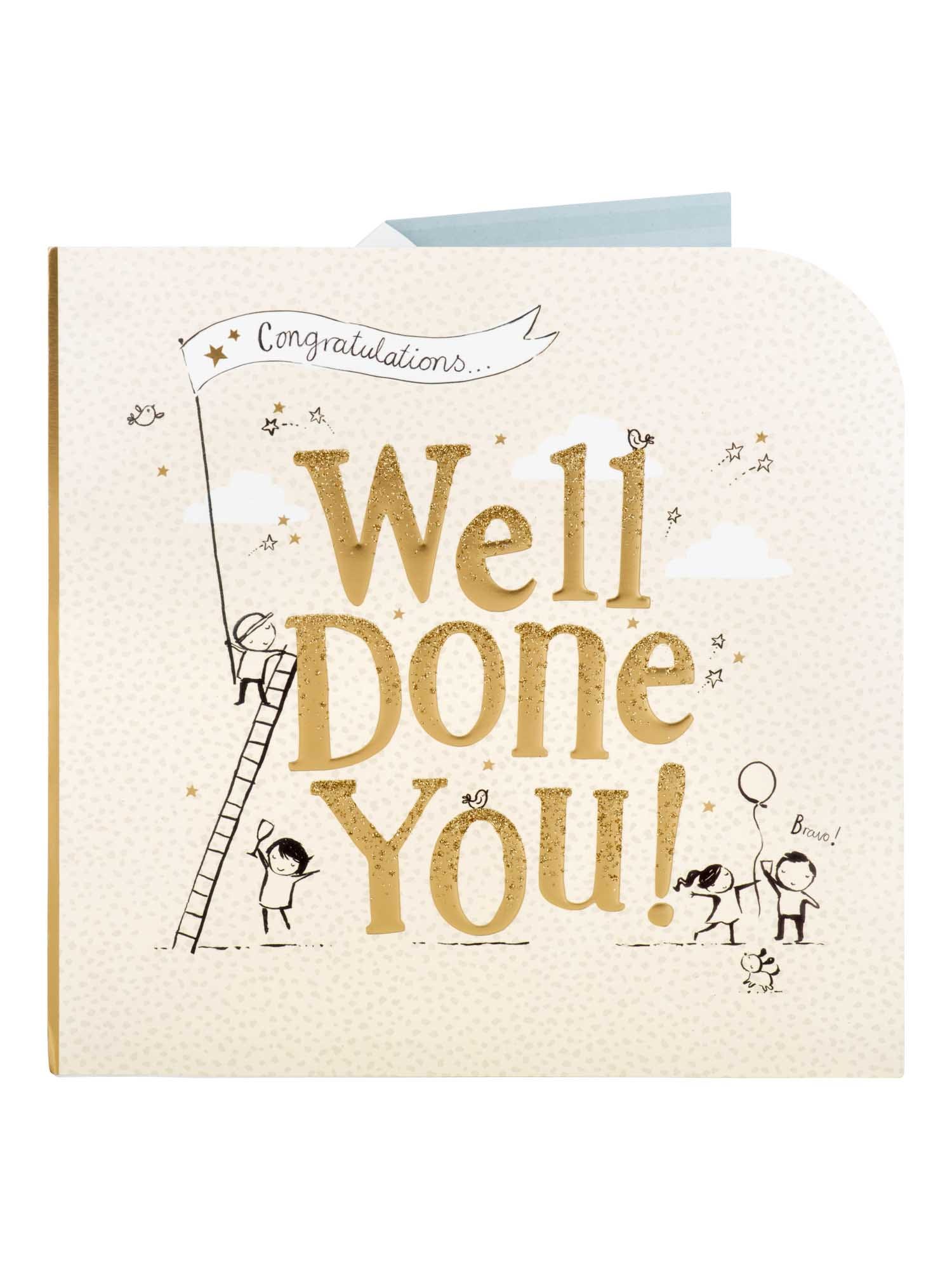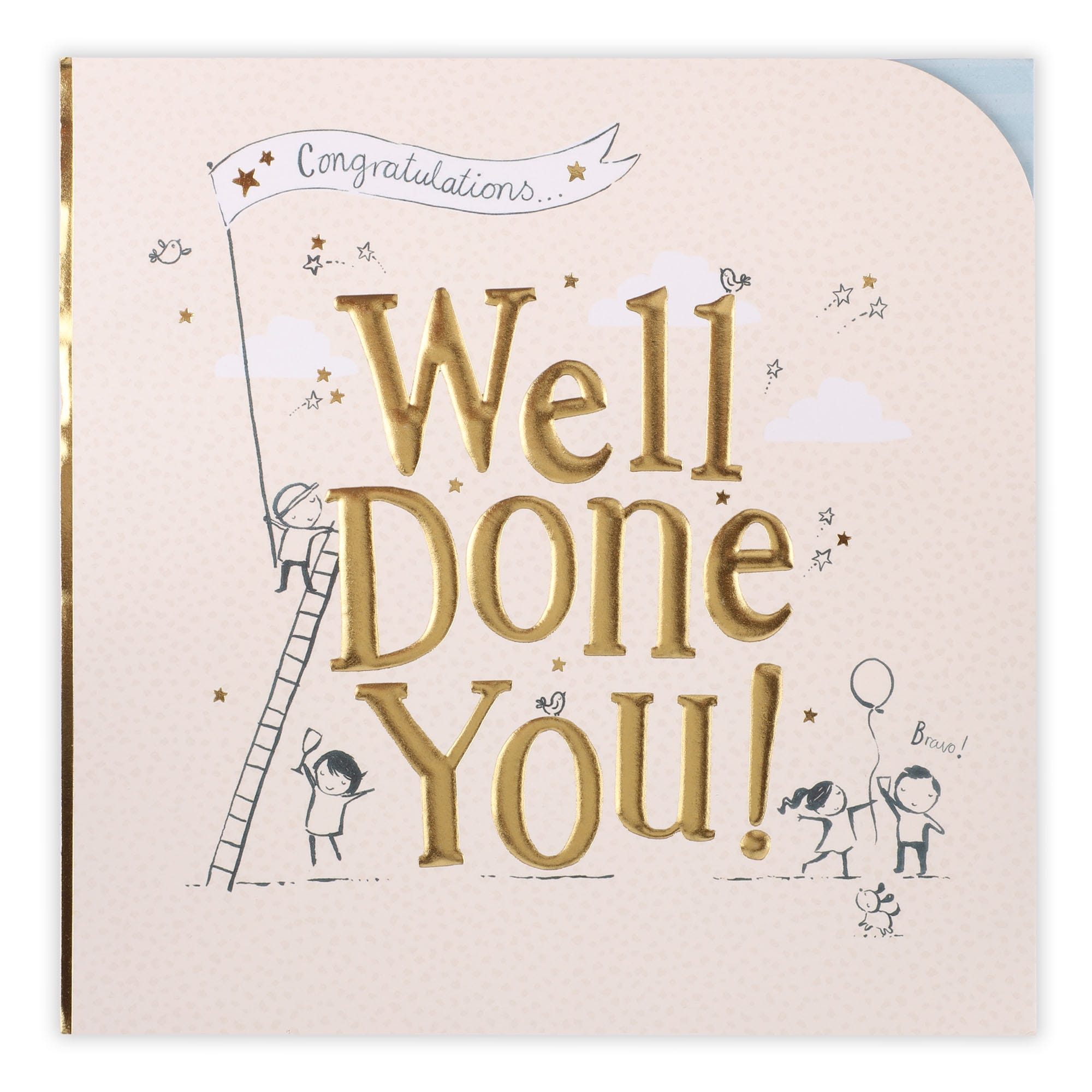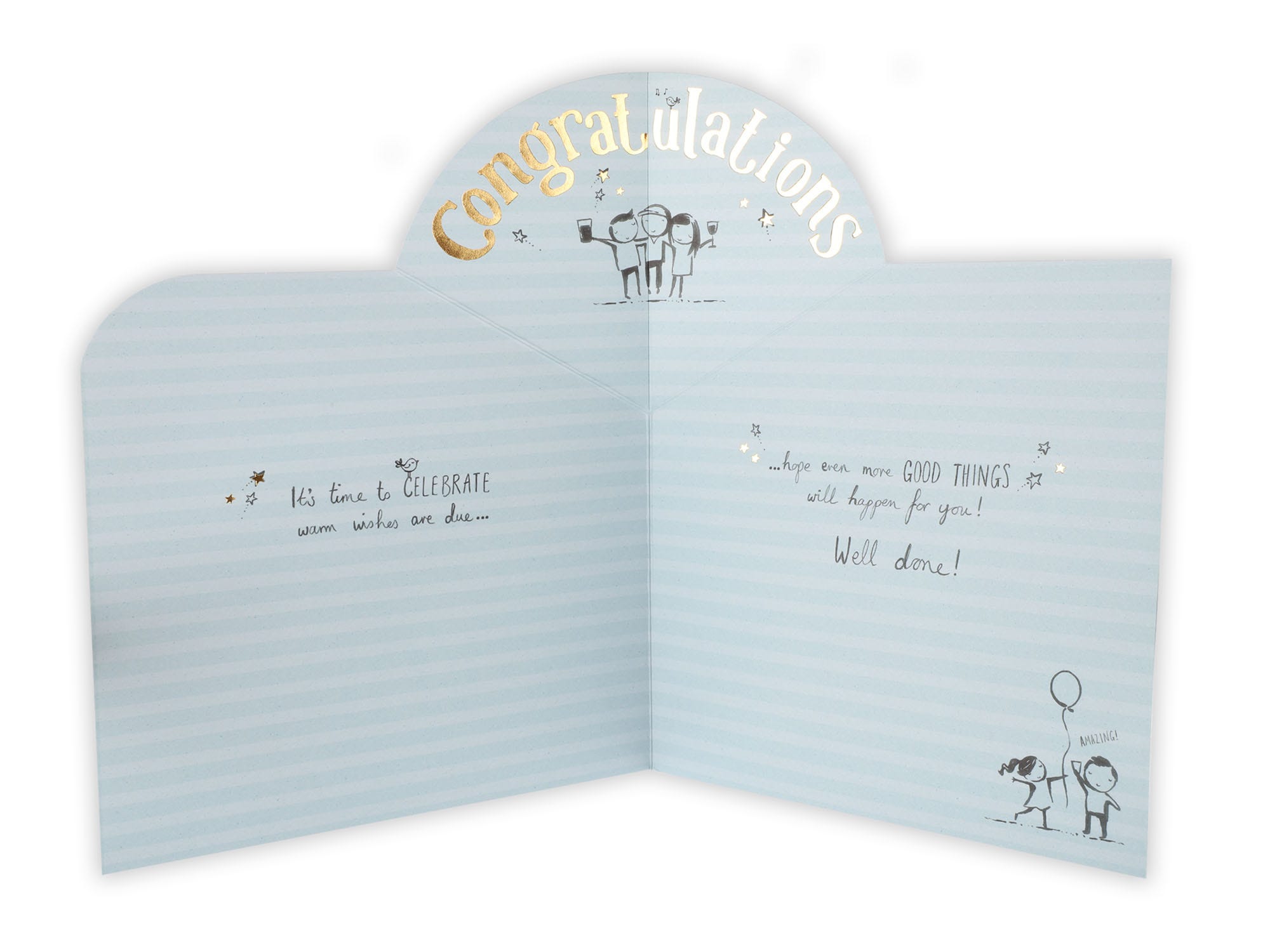 This lovely congratulations card, finished with gold foil details, features a fun, fold-out message inside as well as a sweet rhyming verse to make the recipient feel special. MESSAGE: Congratulations well done you. INSIDE: Congratulations It's time to celebrate warm wishes are due, hope even more good things will happen for you. Well done. Card Size: 186 x 186mm.