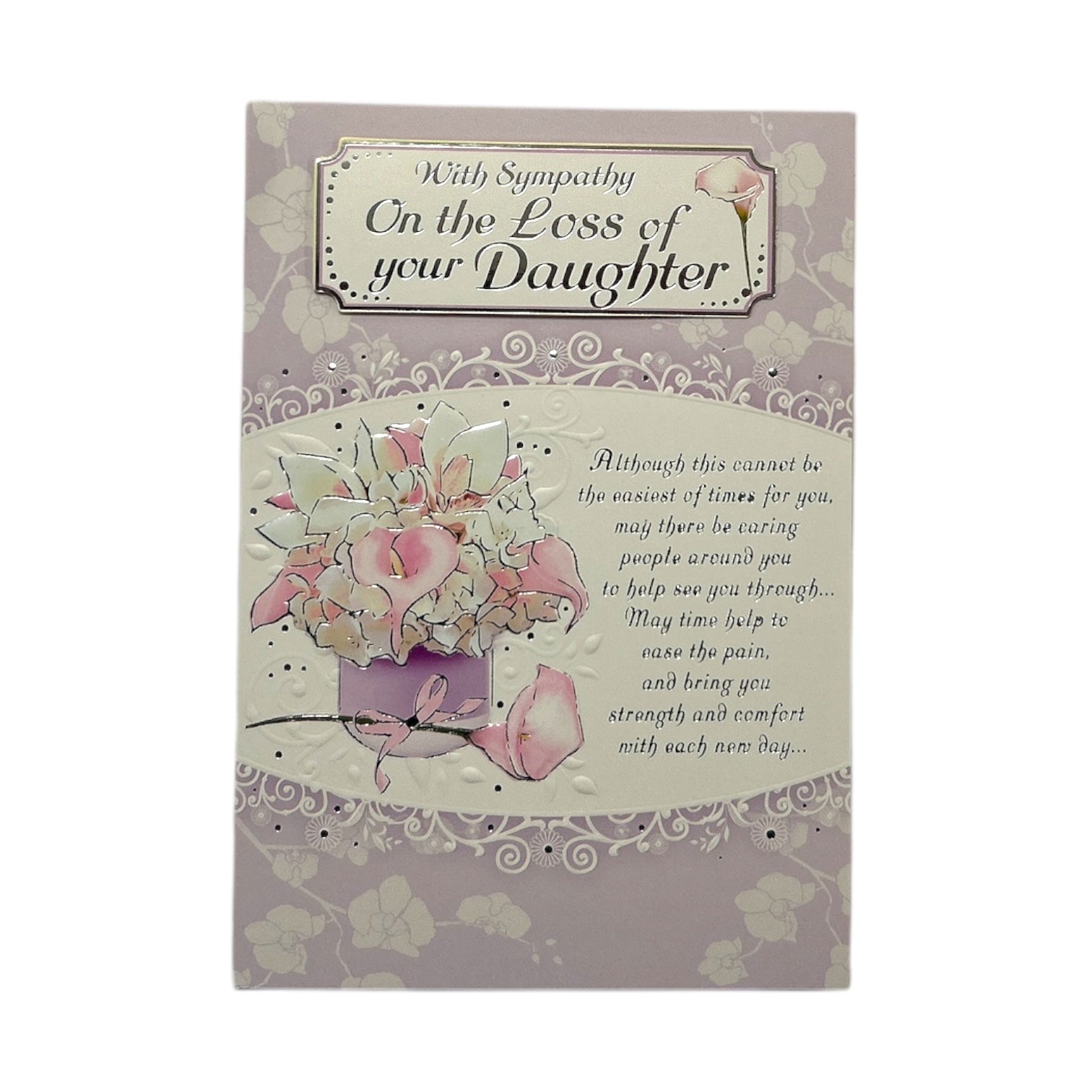 With Sympathy On Loss of Your Daughter Silver Foiled Card. Approx Size: 190 x 140mm.