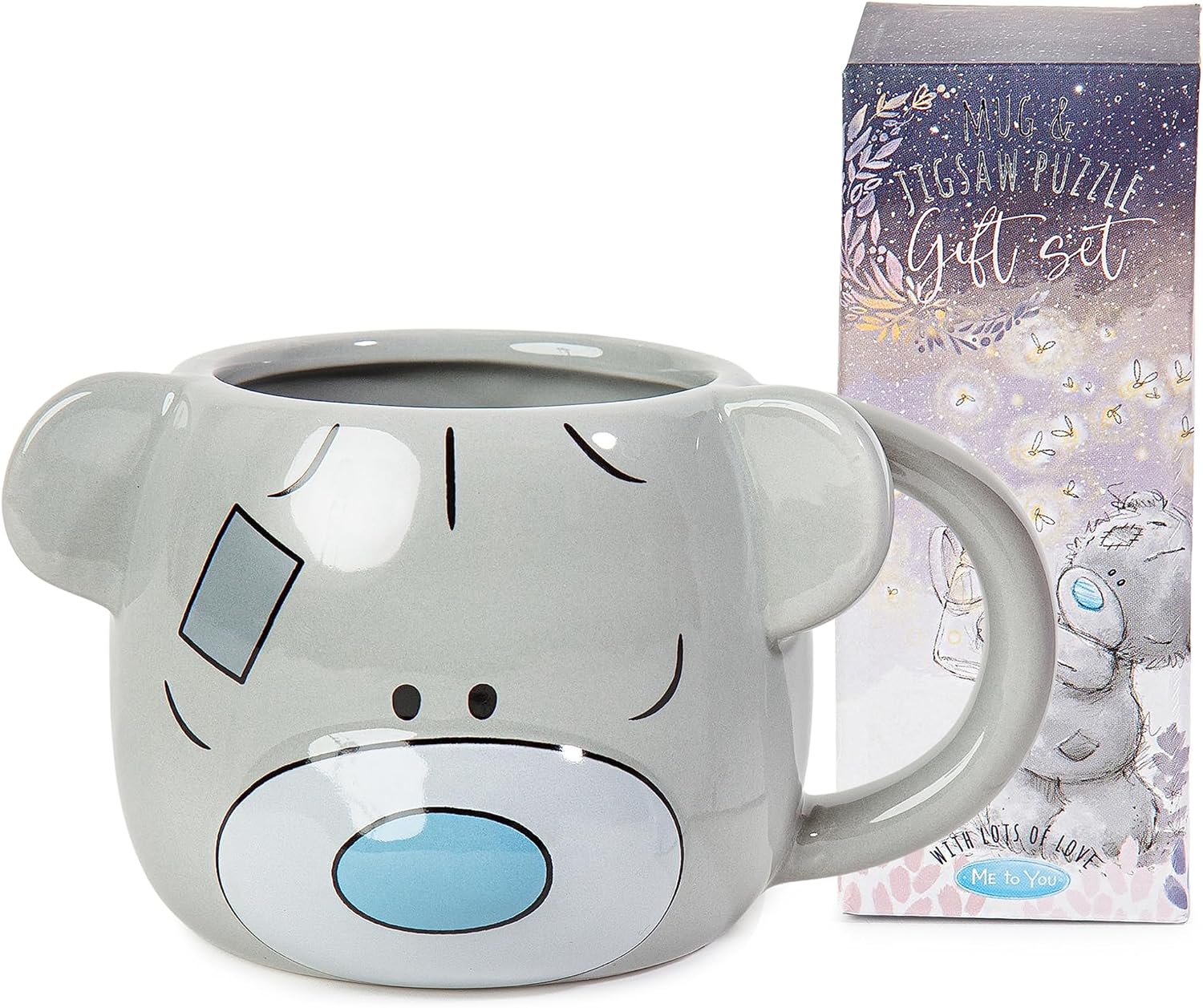 NOVELTY CERAMIC MUG - the mug is crafted in the shape of Tatty Teddy's loveable face, complete with blue nose and patches JIGSAW - illustrated with a beautiful image showing Tatty Teddy lying in a field, looking up at the moon and stars with paws joined to create a heart shape. THOUGHTFUL PRESENT FOR CHRISTMAS OR AT ANY TIME - ideal as a small Christmas or birthday present, or as a stocking filler for a child or grown-up Me to You fan MADE FROM PREMIUM QUALITY MATERIALS - every Me to You gift is made with love, care and meticulous attention to detail.