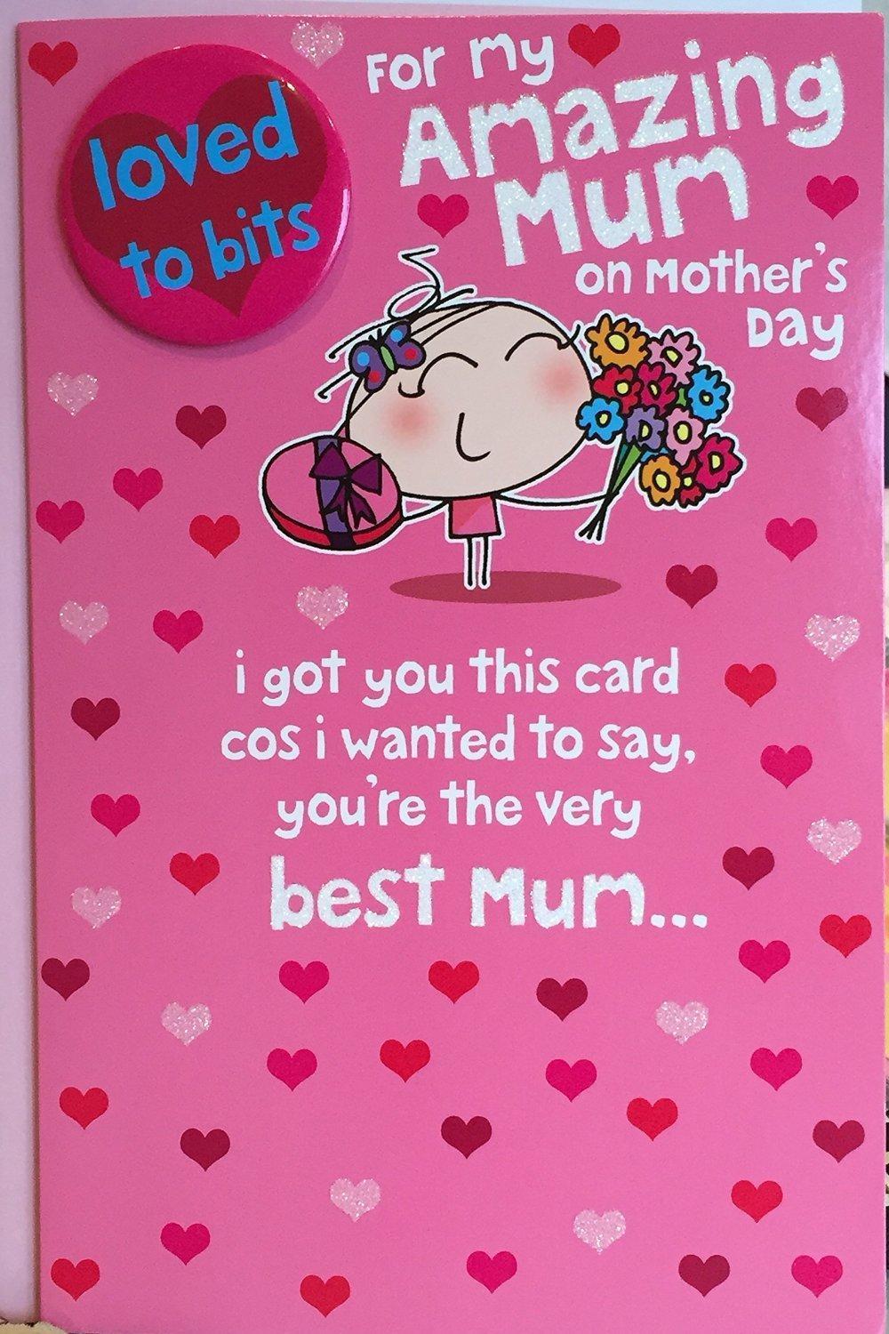 Amazing Mum On Mother's Day Large Mother's Day Card With Badge Loved To Bits