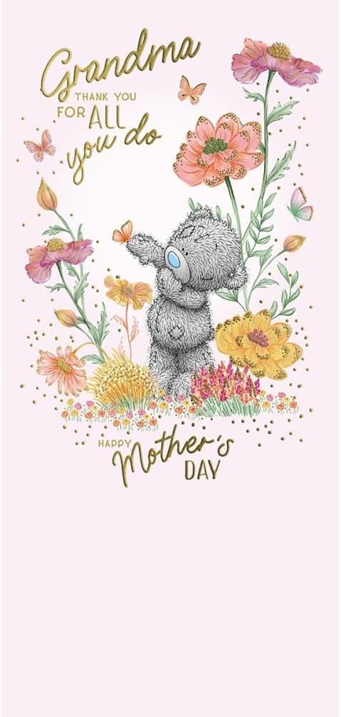 BEAUTIFUL MOTHER'S DAY CARD FOR GRAN - surprise your wonderful grandma with this adorable card featuring too-cute Tatty Teddy strolling in a magical flower meadow LUXURY GOLD FOIL FINISH - with gold lettering and a beautiful gold foil finish on the butterfly and flower motifs, this Me to You card is sure to add sparkle to a special day THOUGHTFUL WORDS - front cover message 'Grandma, thank you for all you do…Happy Mother's Day' Inside message 'With lots of love now & always' CARD MEASURES 4 x 8 INCHES - made from highest quality materials, with love and care, this stunning card is sure to be cherished