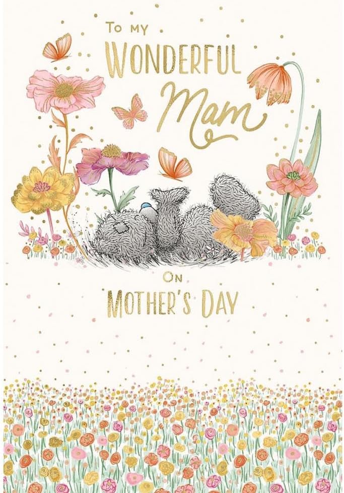 SHOW MAM HOW MUCH YOU CARE - this adorable card is perfect for letting your wonderful mam know how special she is on Mother's Day - and every day of the year! LUXURY GOLD FOIL FINISH - with gold lettering and a beautiful gold foil finish on the butterfly and flower motifs, this card is sure to add sparkle to a special day ADORABLE ARTWORK AND LOVING MESSAGE - the hand sketched illustration shows cute Tatty Teddy in a beautiful flower meadow, with further artwork on the inside cover too. Cover message: To my wonderful Mam on Mother's Day. Inside message: Have a brilliant day CARD MEASURES 6 X 9 INCHES - printed on top quality board and finished to the highest standards, this beautiful and thoughtful card is sure to be treasured
