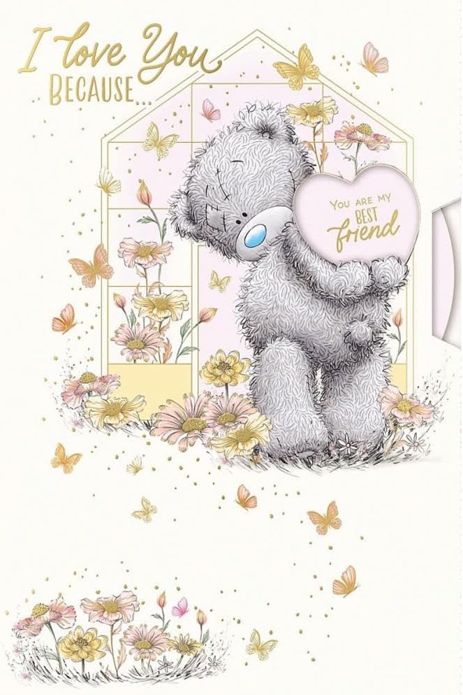 UNIQUE MOTHER'S DAY CARD - this luxury card features adorable hand sketched Tatty Teddy illustrations and a fun spinning wheel - simply turn the wheel to reveal all the reasons your mum is so special to you LUXURY GOLD FOIL FINISH - with gold lettering and a beautiful gold foil finish on the butterflies and flower motifs, this card is sure to add sparkle to a special day LOVING WORDS - Cover message: I love you because…You are my best friend/You believe in me/You give the best hugs/You are beautiful. Inside message: Sending lots of love and hugs to you on Mother's Day CARD MEASURES 6 X 9 INCHES - printed on top quality board and finished to the highest standards, this is a super cute card to treasure on Mother's Day and beyond