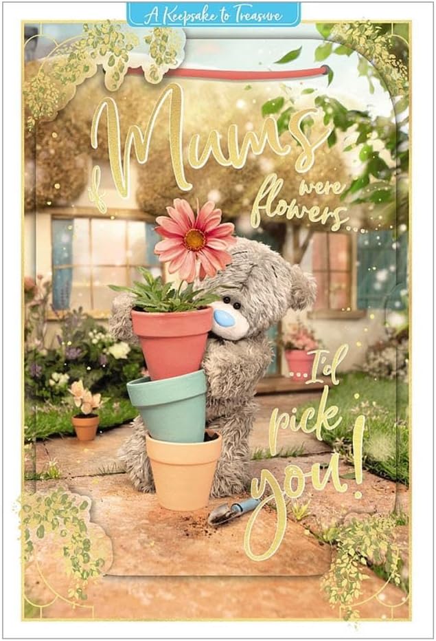 CUTE 3D MOTHER'S DAY CARD - this luxury design in the Me to You 3D range features an adorable lenticular image, bringing Tatty Teddy to life as you gently tilt the card! KEEPSAKE PLAQUE FOR MUM TO TREASURE - the 3D front cover can be gently detached to reveal a cute keepsake with hanging ribbon for your mum to display at home or work LOVING WORDS - cover message: If Mums were flowers…I'd pick you! Inside message: With lots of love on Mother's Day INSIDE PAGES ALSO ILLUSTRATED - open the card to reveal a further irresistible photo-real illustration of Tatty Teddy's beautiful cottage garden PREMIUM ME TO YOU MOTHER'S DAY CARD 6 X 9 INCHES