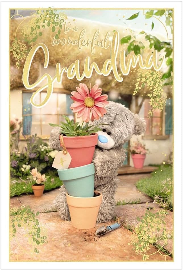 Bear With Stack Of Plant Pots Wonderful Grandma Photo Finish Mother's Day Card