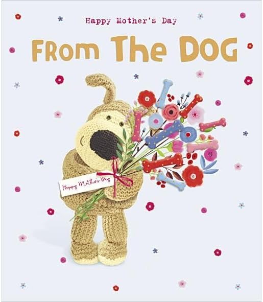 Boofle Holding Bunch Of Flowers And Bones From Dog Mother's Day Card