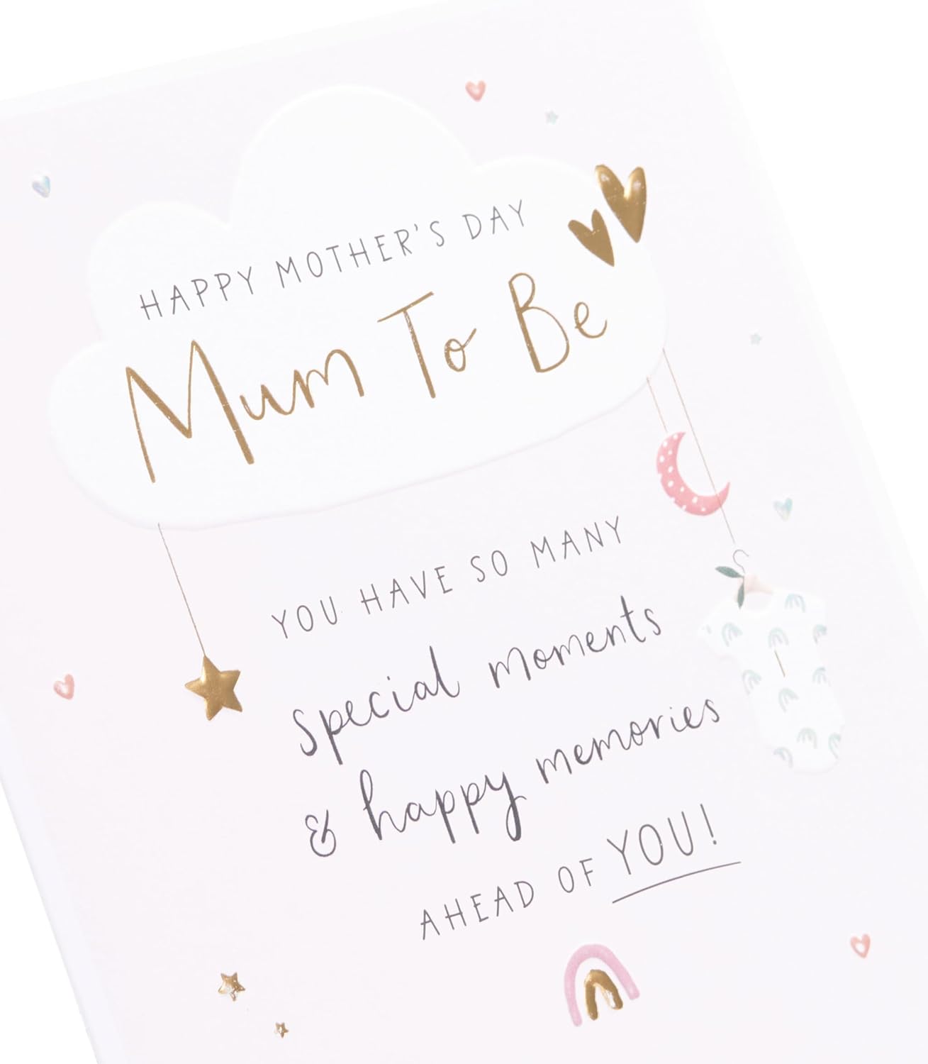 Send extra-special Mother’s Day wishes to the mum-to-be with this adorable card, which features a cute cloud mobile design enhanced with gold foil details. Message Inside Reads: You're going to be an amazing mum. With Love Card Size: 159mm x 184mm | Envelope Included