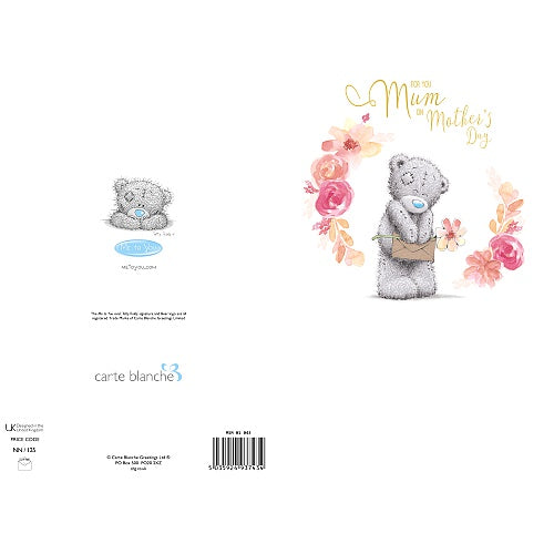 For Mum Tatty Teddy With Card And Flower Design Mother's Day Card. Approx Card: 6 x 9". Postage: Standard UK Letter Size.