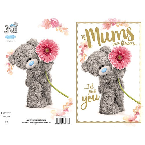 For Mum Tatty Teddy With Gerbera Flower Design Mother's Day Card. Approx Size: 6 x 9". Postage: Standard UK Letter Size.