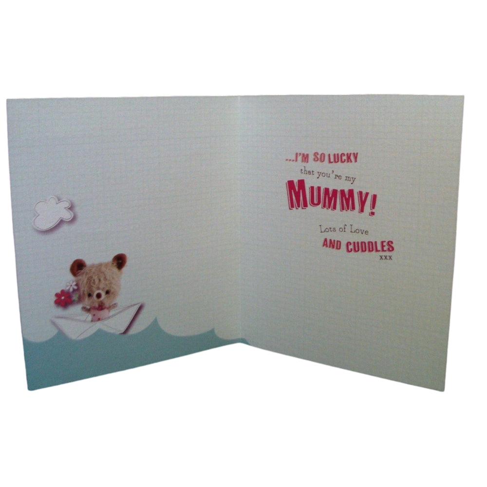 For Mummy Cute Teddy Mother's Day Card. Message Inside Read: "I'm So Lucky That You're My Mummy! Lots of Love And Cuddles. xxx"