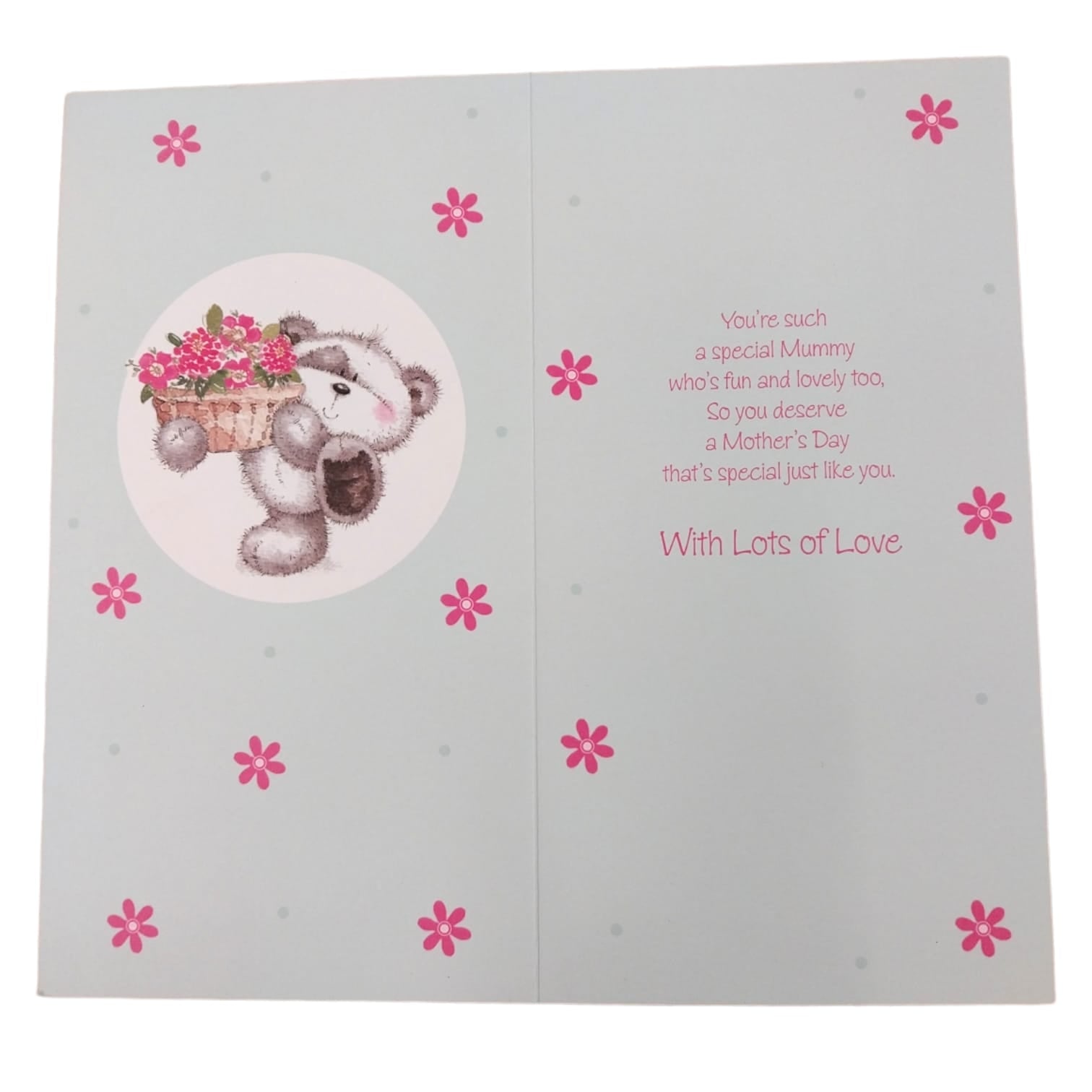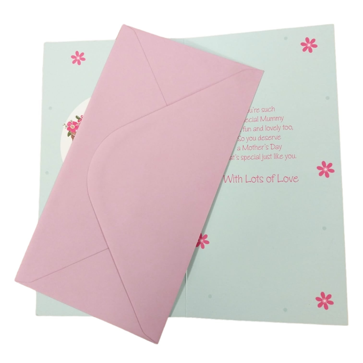 Verse Outside Happy Mother's Day MUMMY. Verse Inside You're such a special Mummy who's fun and lovely too,So you deserve a Mother's Day that's special just like you.With Lots of Love. Dimensions Width:12 cms Height:23 cms Envelope: Pink.