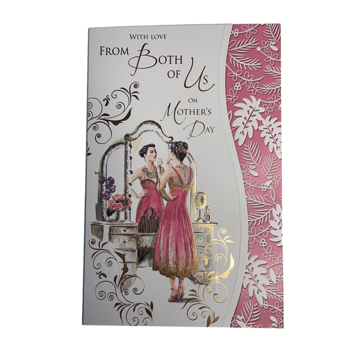 From Both of Us Lady Doing Make-up Design Mother's Day Card. Approx Size: 235 x 127mm.