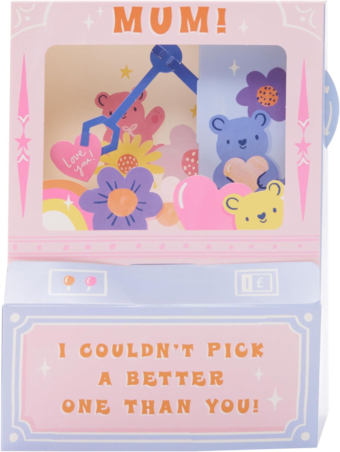 A bold and innovative Mother’s Day card for Mum, created in the 3D shape of a classic arcade grabber machine and a sweet and complimentary play on words. Blank Inside For Your Own Message. Card Size: 200mm x 200mm. Envelope Included. Thi s product is FSC-labelled, meaning you’re supporting responsible forestry and helping fight climate change, protect biodiversity, and support communities.