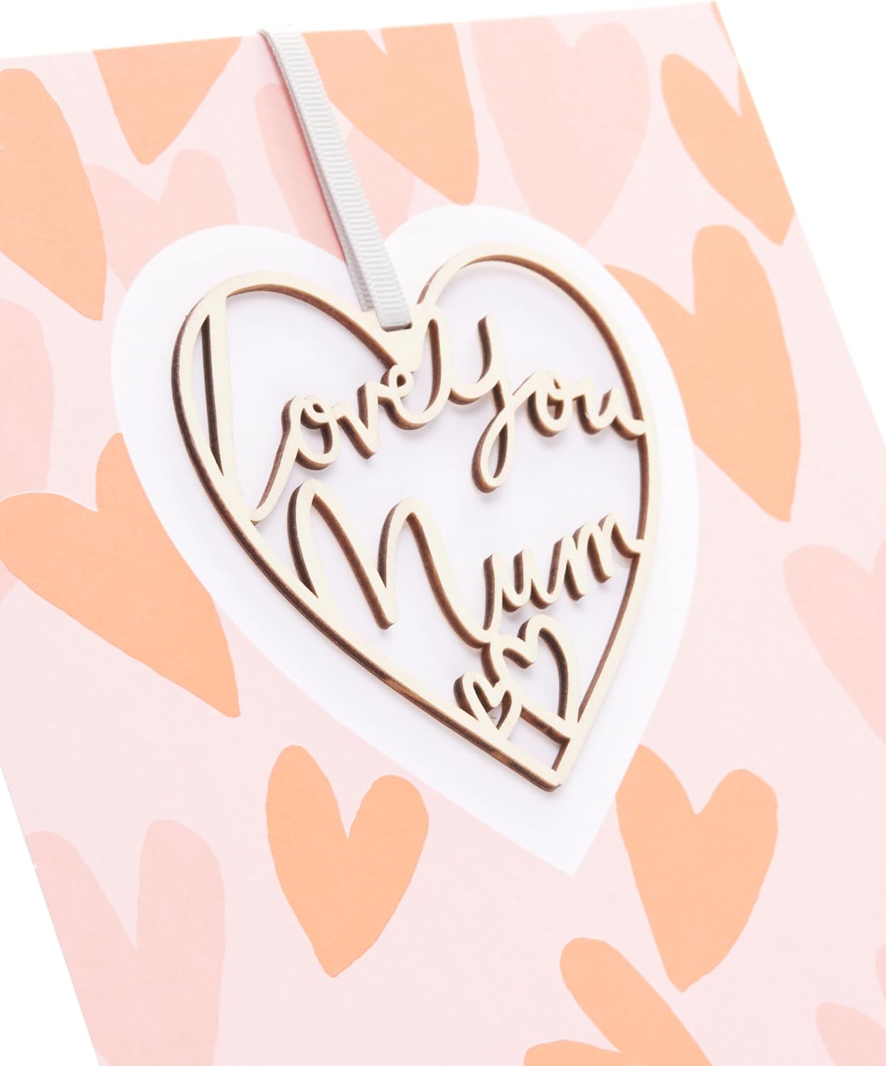 Send a big thank you to Mum for all she does with this extra-special Mother’s Day card featuring a wooden heart keepsake with the words “Love You Mum.” Message Inside Reads: There are no words - for all you've done - but thank you seems like a good place to start. Happy Mother's Day Card Size: 186mm x 186mm | Envelope Included