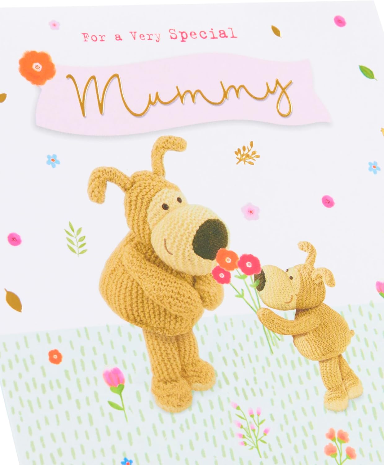 Little Boofle Handing Flowers To A Big Boofle Mummy Mother's Day Card