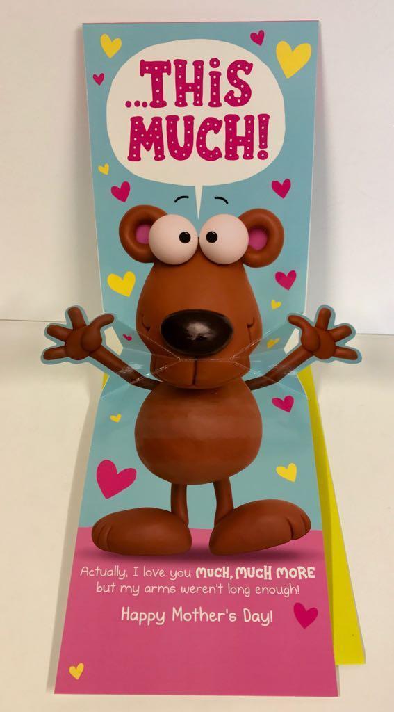 Cover Message: To my lovely Mum Do you know how much I love you?... Inside Message: ...This Much! Actually I love you MUCH, MUCH more but my arms weren't long enough! Happy Mother's Day! Envelope Height (mm): 155 Envelope Width (mm): 235 Style: 3D Pop Up Relationship: Mum Occasion: Mother's Day Recipient: For Her
