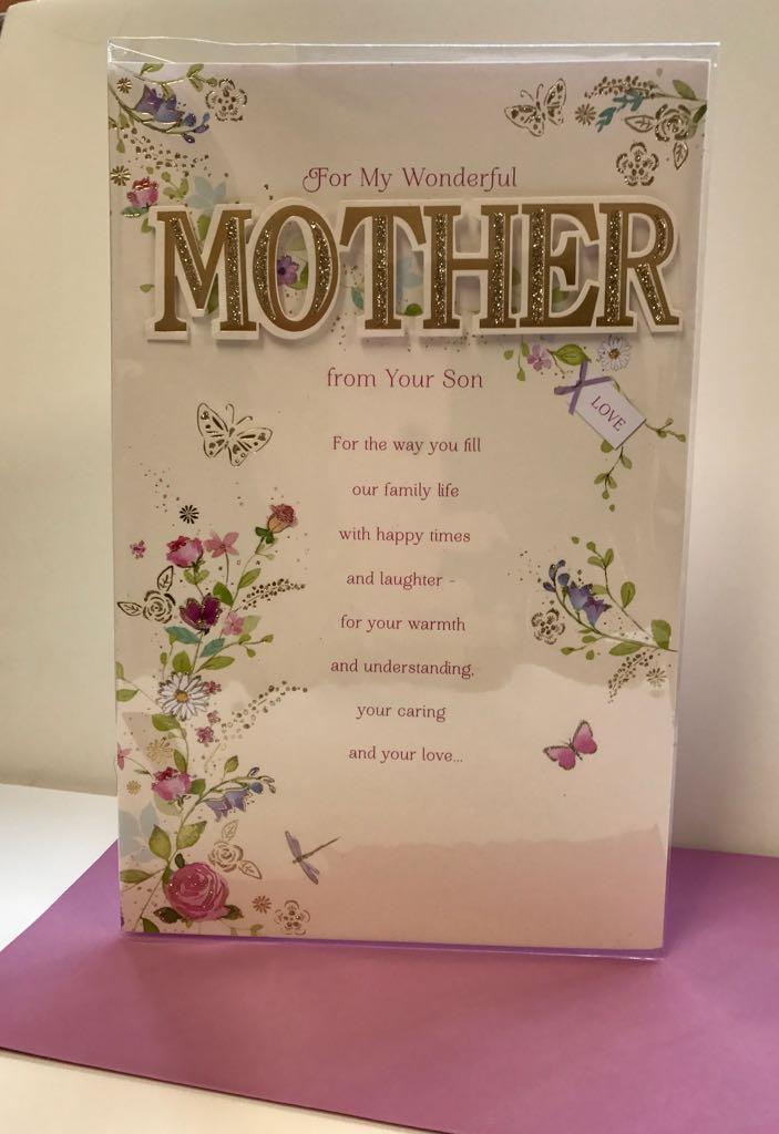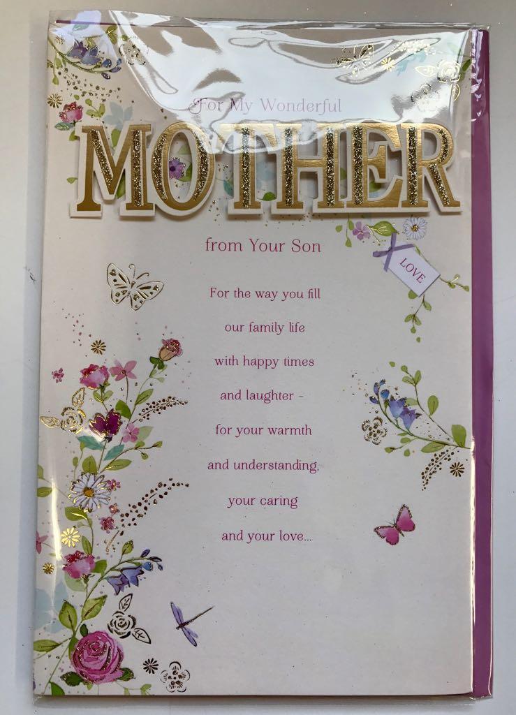 Mother Sparkling Butterflies Birds and Flowers From Your Son Mothers Day Collection Card