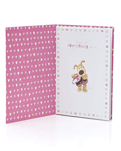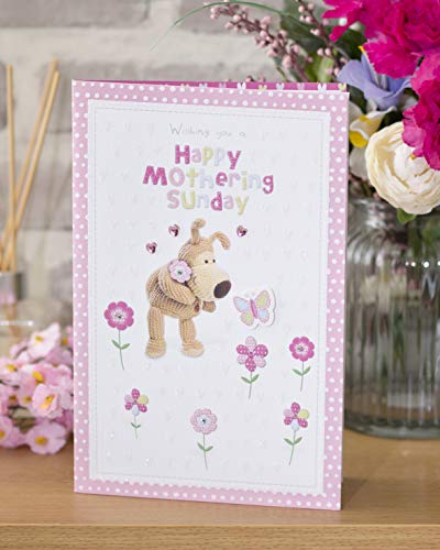 Send a wish for a happy Mothering Sunday with this cute Boofle card, complete with a glittering insert and pink heart gems. Inside Message Reads: Thanks for everything you do... ...today and every day! Happy Mother's Day with lots of love Envelope Included Mother's Day Card