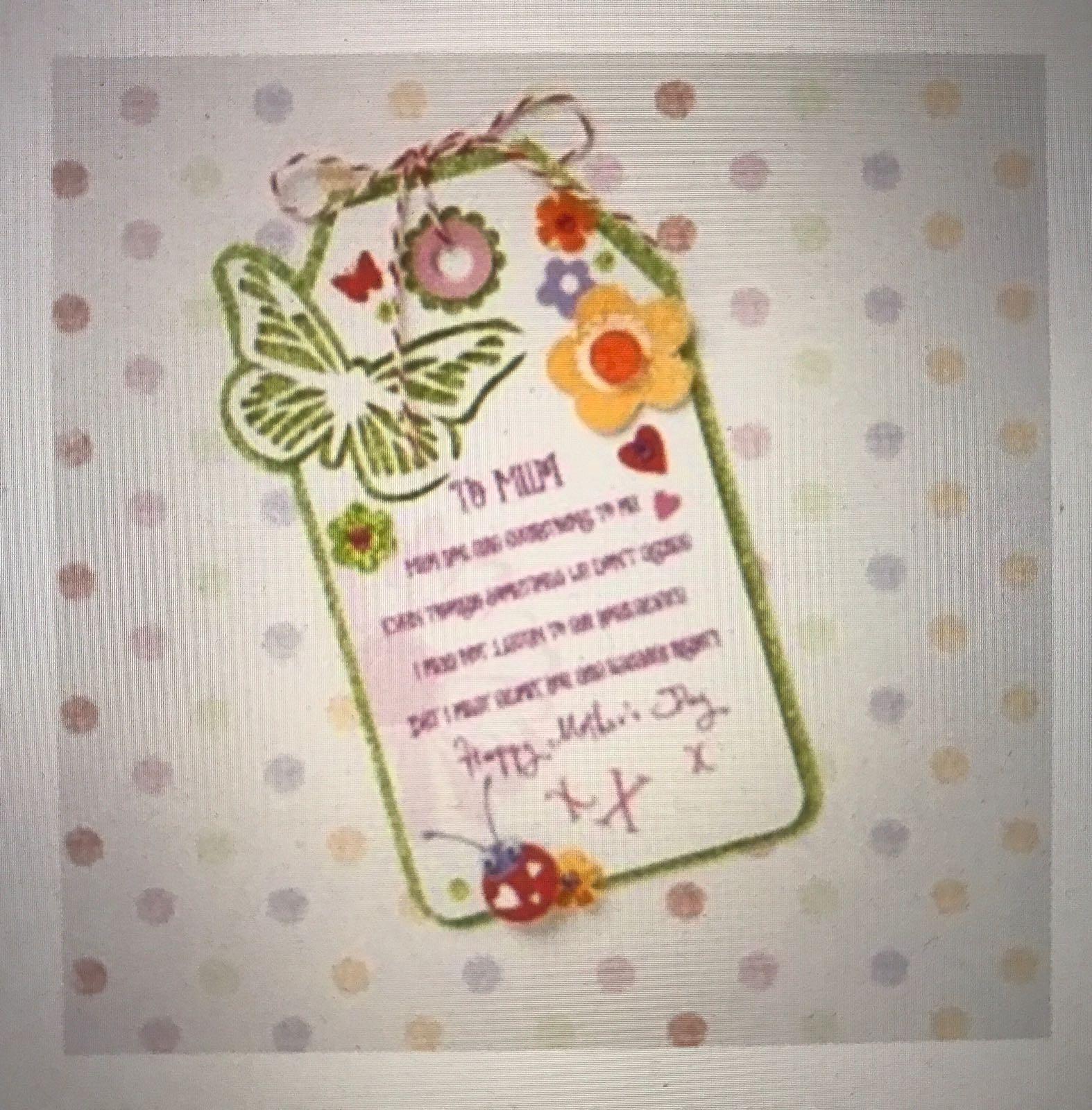 Mum Tag With Lovely Verse Handmade Luxury Mother's Day Card