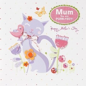 Mum You are PURR-FECT! " Handmade Mother's Day Card QUALITY HANDMADE CARD BY LELLO THIS CARD HAS BEEN LOVINGLY MADE USING AN ARRAY OF GENUINE CRYSTALS, GLITTERS, SEQUINS AND BOWS. STYLISH AND VERY SOPHISTICATED. Product Dimensions Width: 170mm, Height: 170mm, Depth: 10mm.