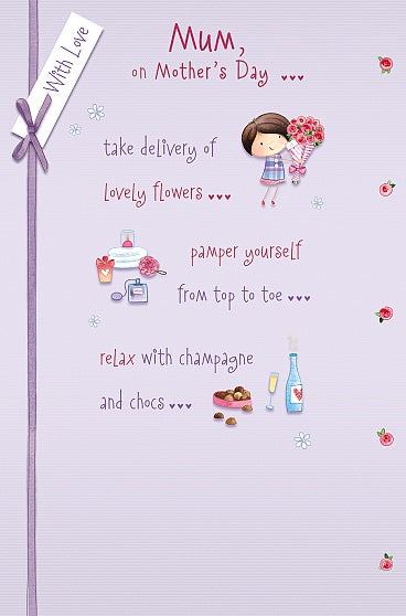 Open Mum Flowers And Treats Mother's Day Card. Approx. Dimensions (inches): 5 x 7.75 Matching envelope included Carte Blanche Greetings Ltd.