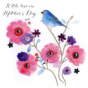 Second Nature Handmade Mother's Day Card In Bloom Range Blue Bird on Blossoms