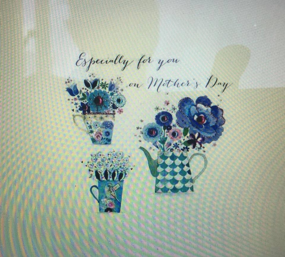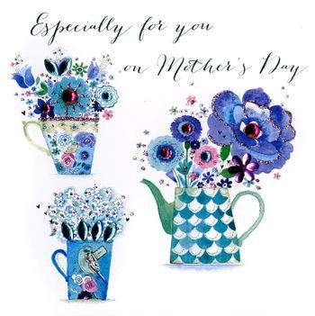 Second Nature Handmade Mother's Day Card In Bloom Range Cups and Jug with Flowers
