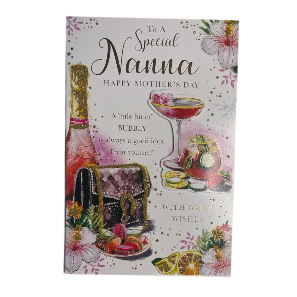 To A Special Nanna A Little Bit of Bubbly Mother's Day Card. Approx Size: 235 x 127mm.