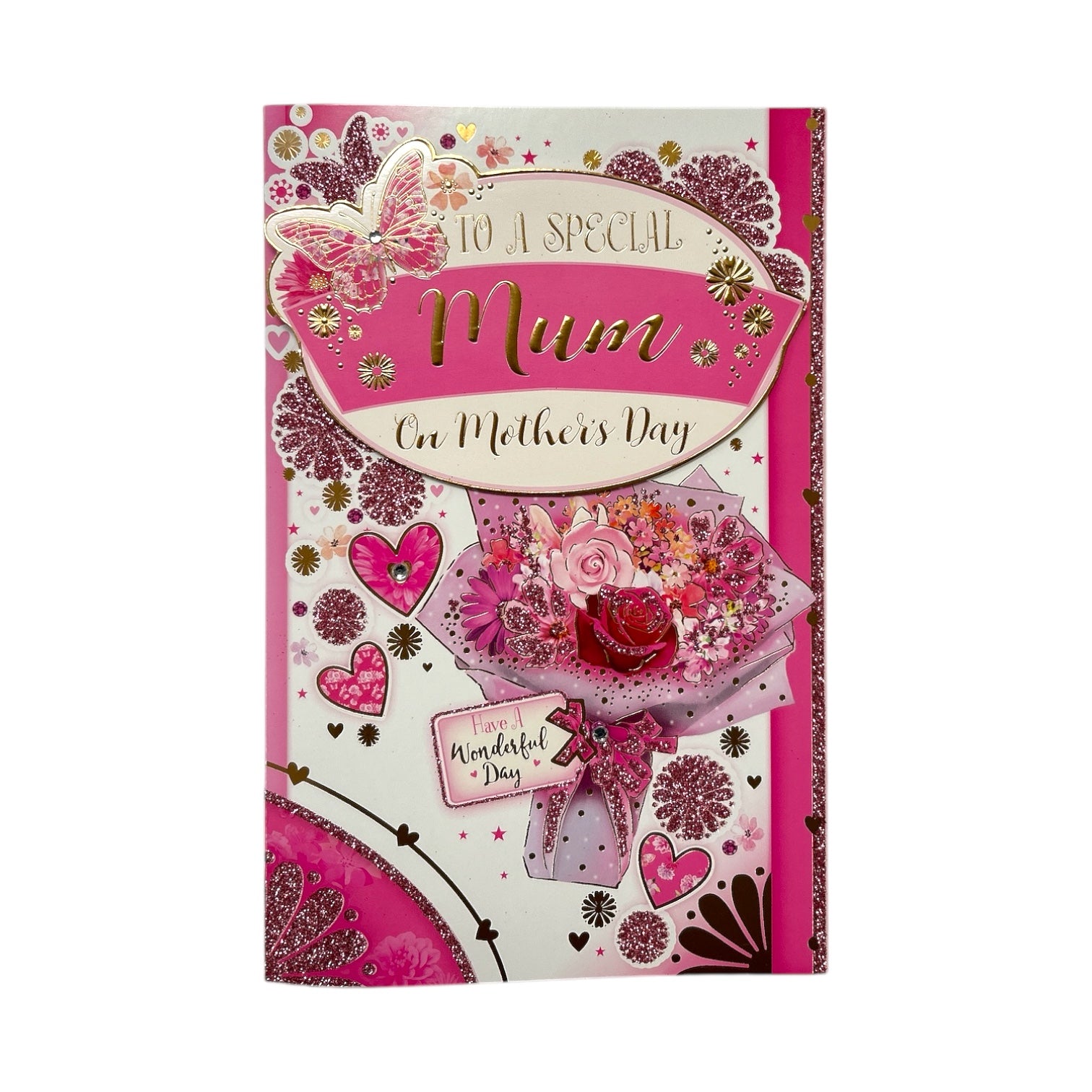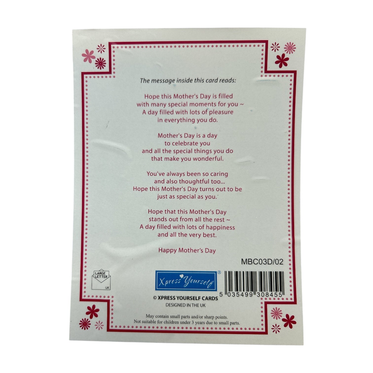 Send your incredible mum all the love in your heart with this adorable Mothers Day card from Xpress Yourself. The perfect way to make her feel extra special and show her just how much you care, today and always. Printed on high-quality board, this card features embossed elements, a paper insert, a stone attachment, foil details and pink glitter finished. The perfect way to make your Mum's Mothers Day extra special and full of love. This card is supplied with Box. Box Card Size Approx. : 29 x 19.5cm.