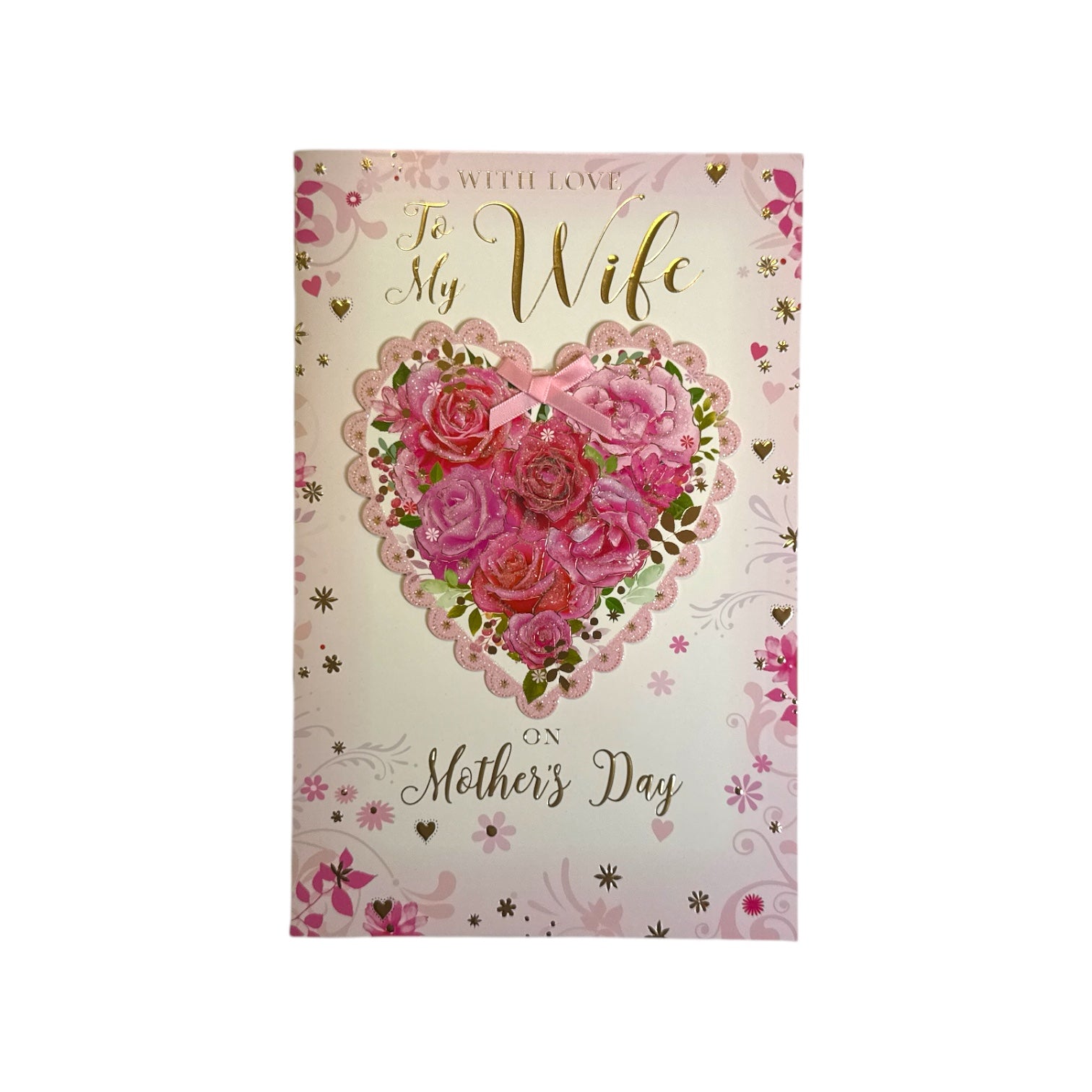To My Wife Floral Heart With Ribbon Design Mother's Day Card