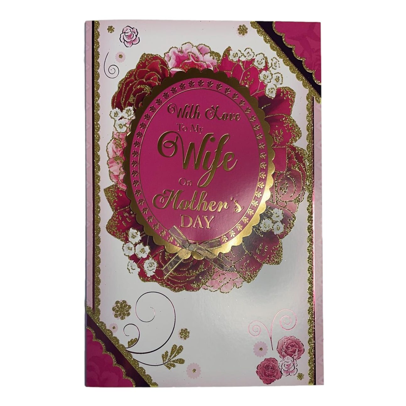 To My Wife Glitter Finished Roses Design Mother's Day Card. Approx Size: 235 x 127mm.