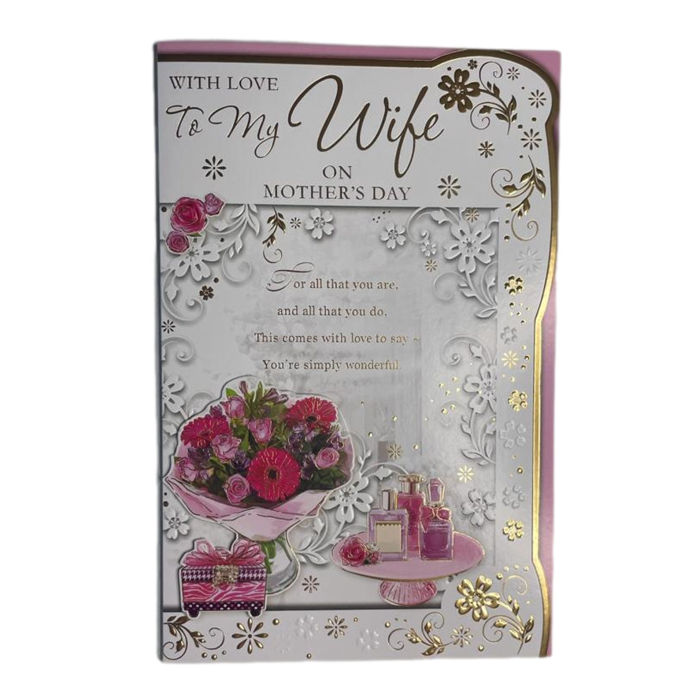 To My Wife On Mother's Day Die Cut Flowers Design Card. Approx Size: 235 x 127mm.