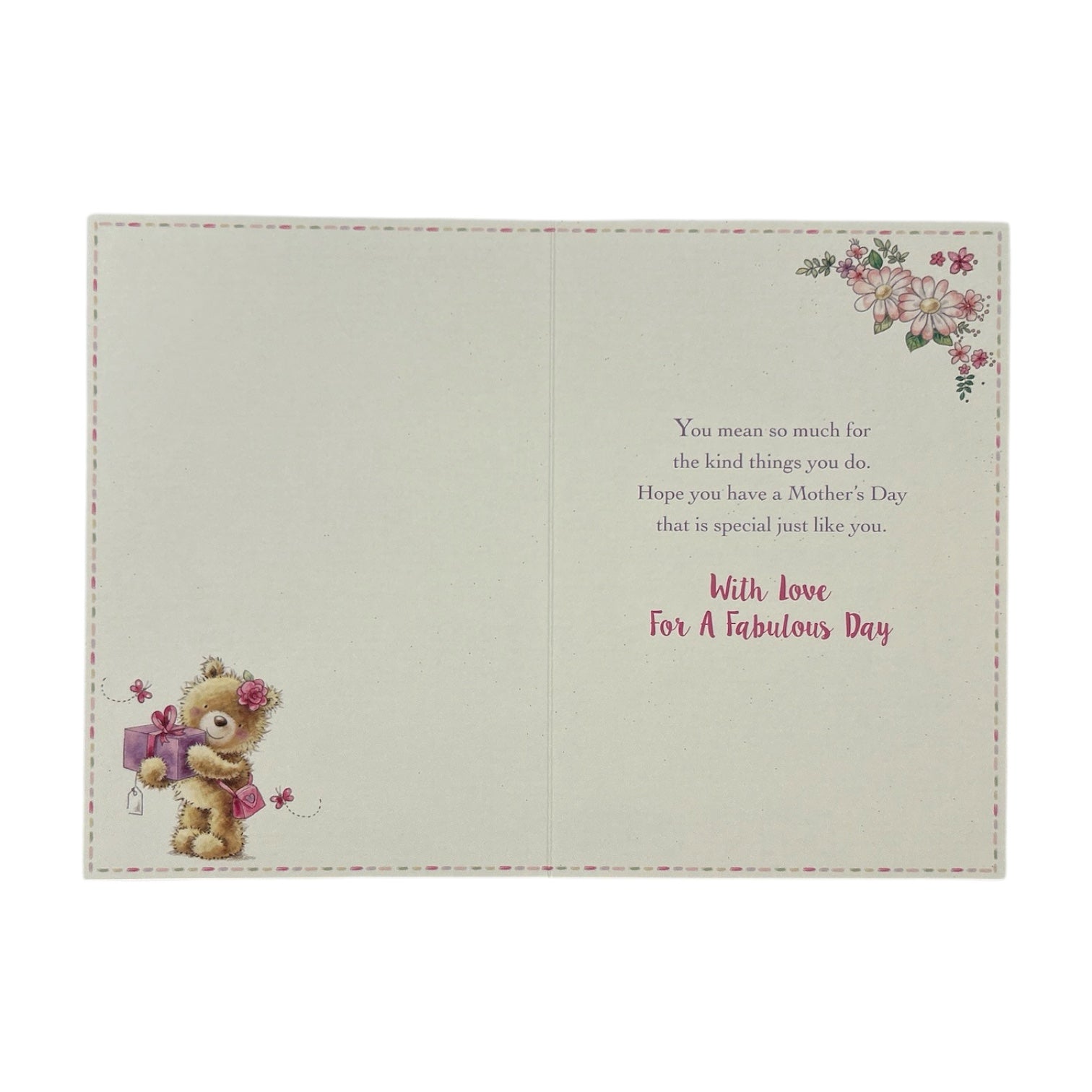 Remind your amazing wife and the mother to your beautiful children... that she makes everyone's world complete, with this cute Mothers day card from Xpress Yourself. The perfect way to thank her for all she does. Printed on high-quality board, embossed elements, lovely teddy and floral design card, foil details, pink glitter finished. The perfect way to make her day extra special and full of love. Mothers day card measures 19.5 x 14cm and is the perfect size to wish lots of love. This card is accompanied with a co-ordinating white envelope.