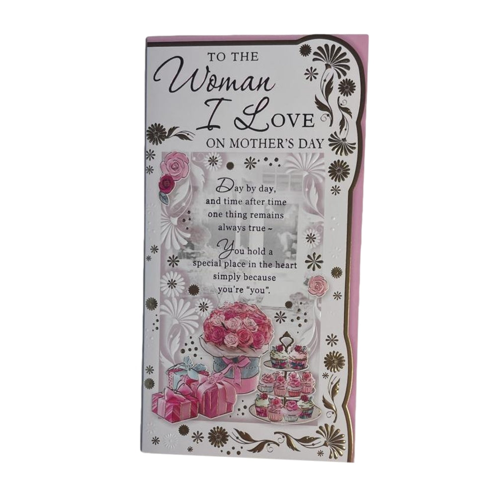 To The Woman I Love Cupcakes And Gifts Design Mother's Day Card. Approx Size: 235 x 127mm.