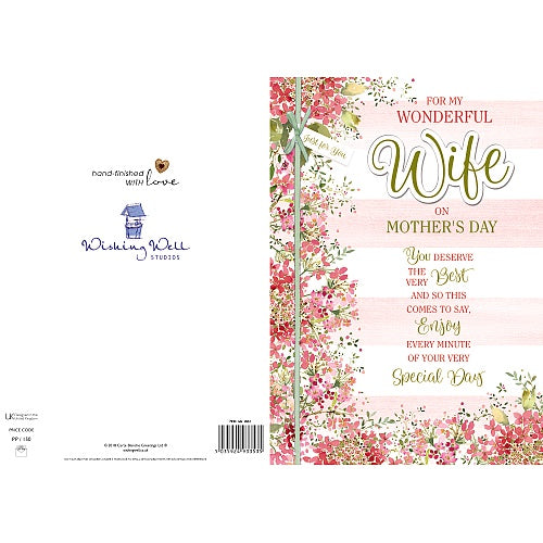 Wonderful Wife Handmade Floral Mother's Day Card. Approx Size: 7 x 10". Postage: Standard UK Letter Size.