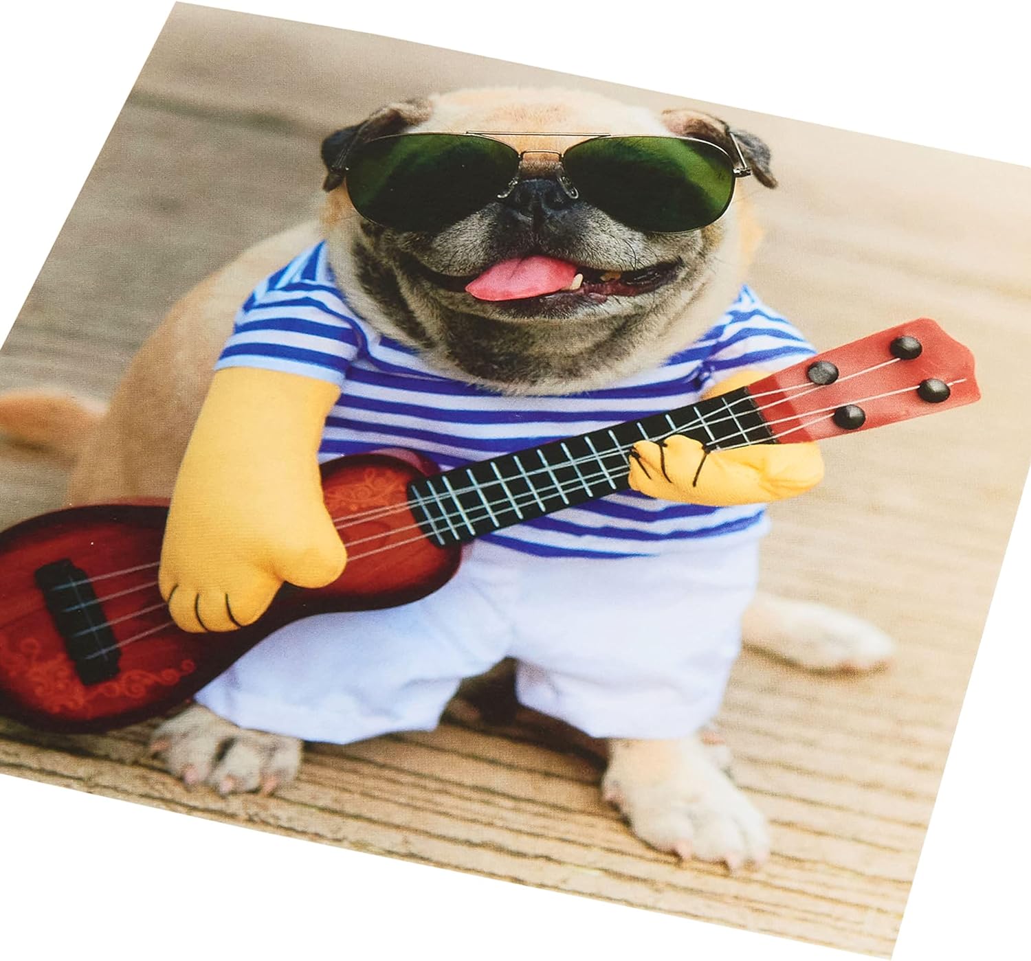 You’re sure to make anyone smile with this fun card, featuring a dog in sunglasses playing a ukulele, which is blank for your own message. Blank Inside for Your Own Message. Card Size: 159mm x 159mm. Envelope Included.