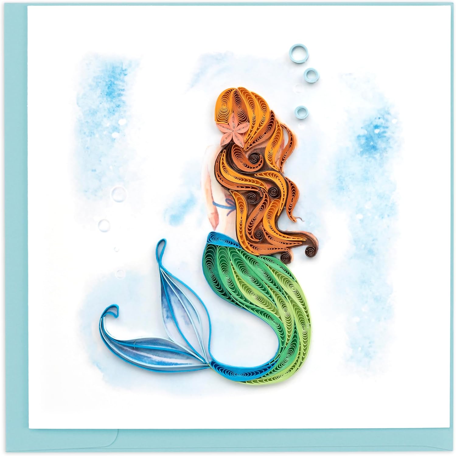 Make their day magical with a unique and colourful handmade card featuring a stunning ginger mermaid, perfect for showing your love and appreciation. You Are Viewing: A Quilled Card By The Quilling Card Company Occasion: Perfect for any celebration! Details: This hand-finished card by Second Nature is adorned with a quilled ginger mermaid, making it a special and thoughtful gift for any occasion. The intricate embellishments add a touch of charm that is sure to make your loved one feel truly cared for. Size: 15.5cm x 15.5cm or 6" x 6"