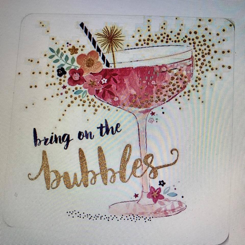 Hotchpotch Greetings Card - Rosé Range designed by Emma Pearce. Cocktail Glass - Bring on the bubbles. Size: 6'' x 6'' Blank inside