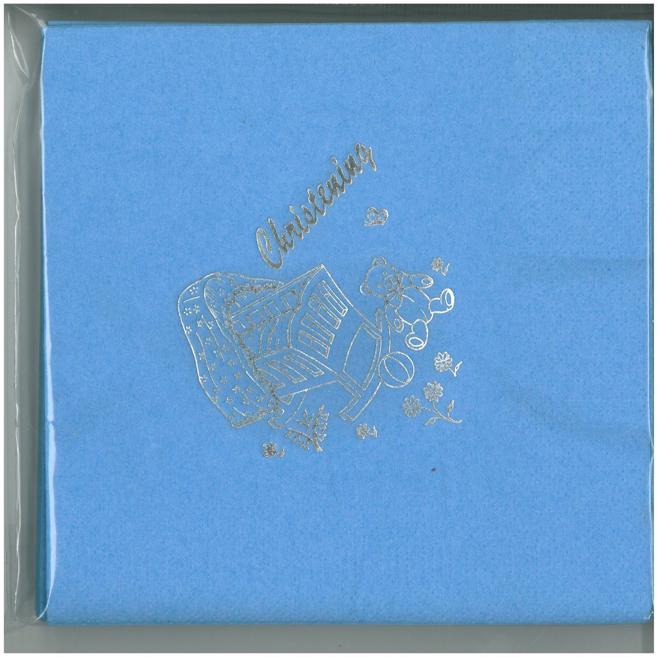 Pack of 15 Luxury Blue Christening Teddy Foil Finished Large Napkins (3 Ply).
