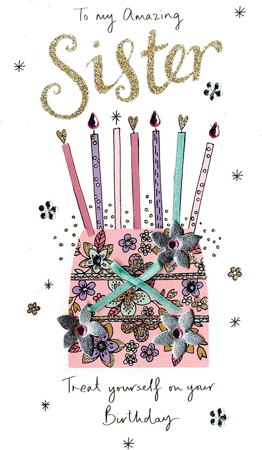 To My amazing Sister Treat yourself on your Birthday Greeting Card Hand-Finished Champagne Range Cards Size 5" x 9" It's time to celebrate you! Wishing you the best birthday ever.