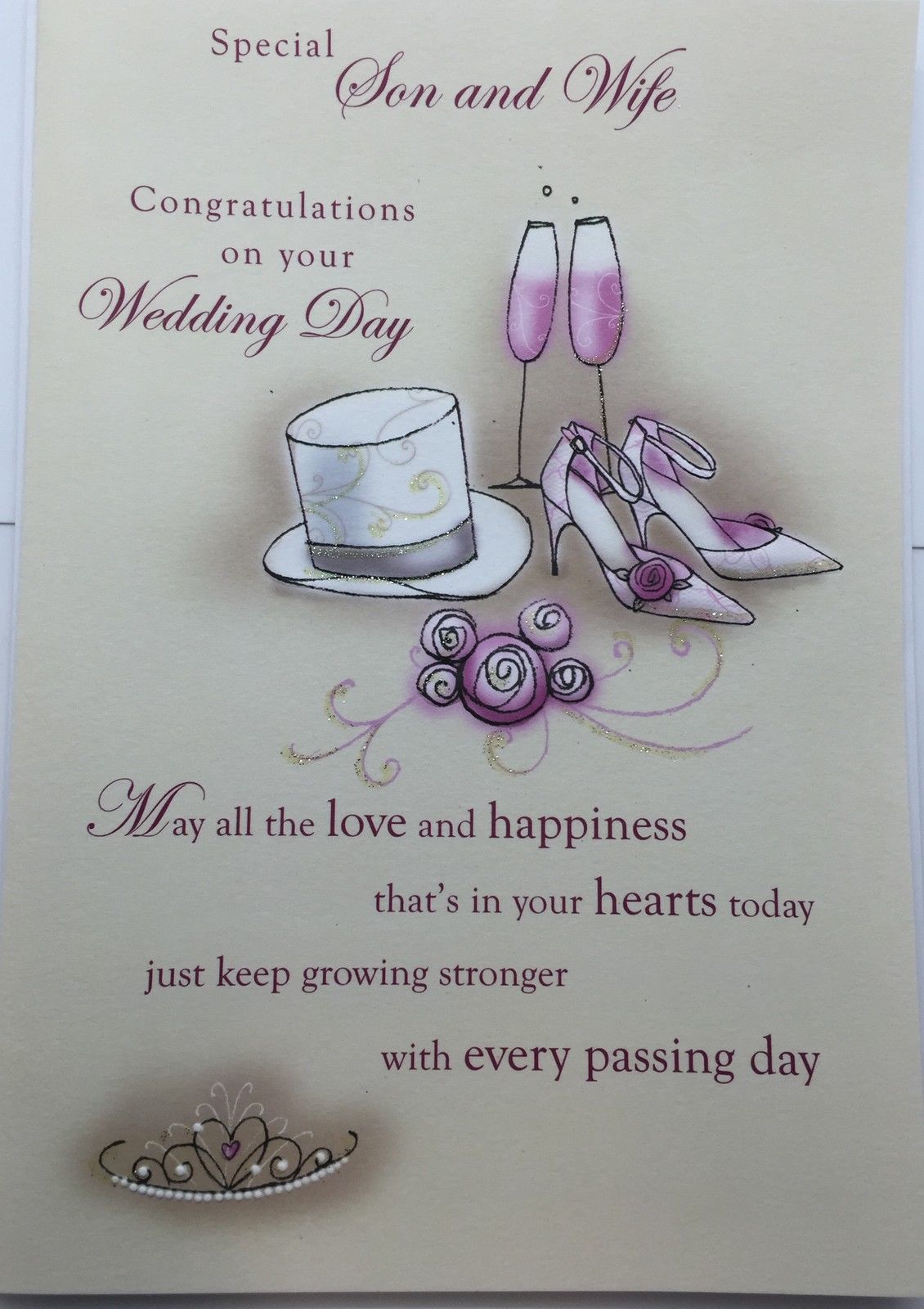 Wedding Day, Son and ladies Large card (code C75), 6 ¼ x 9 cm; Quality Embossed Design With Glitter Glitter Highlights 'Message inside as picture shown