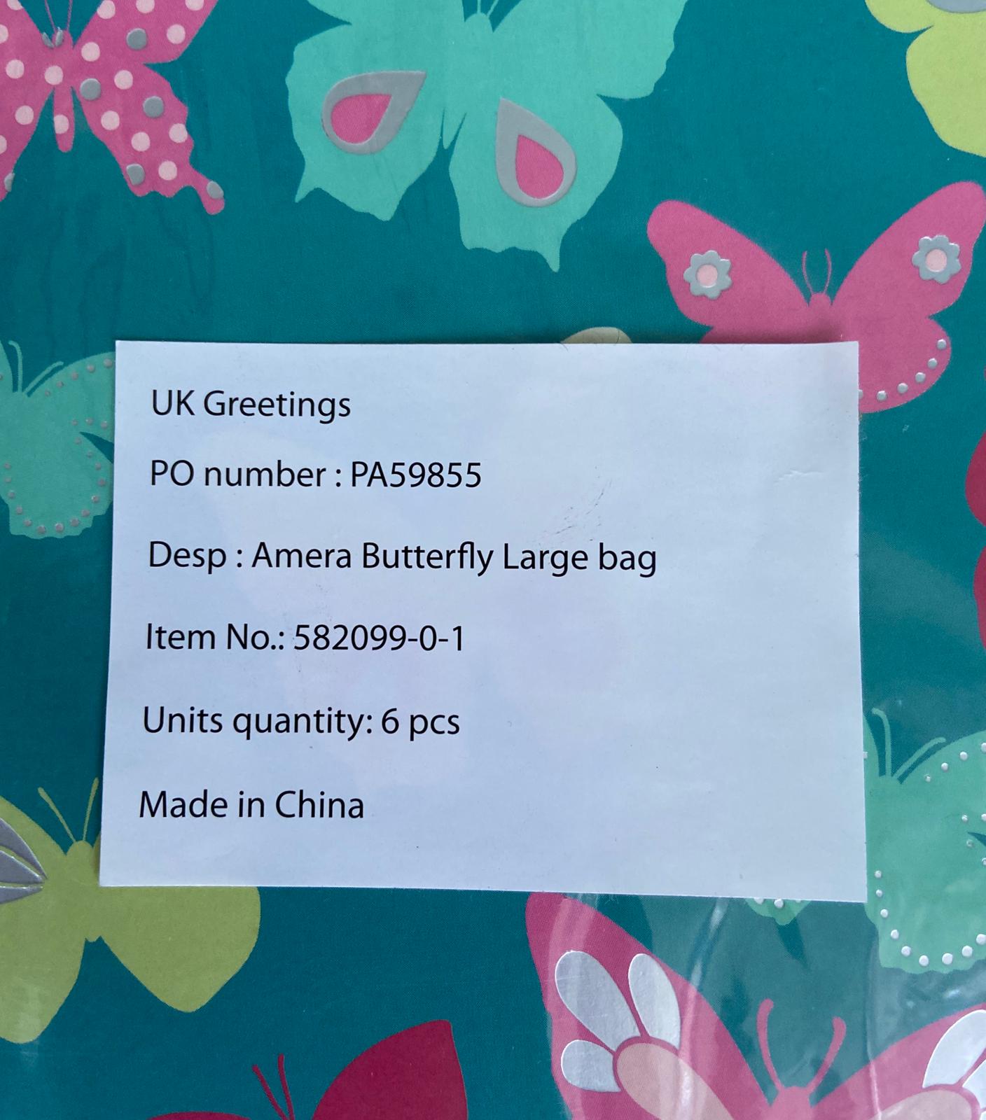 6 x Amera Butterfly Large Gift Bag for Presents Any Occasions {DC}