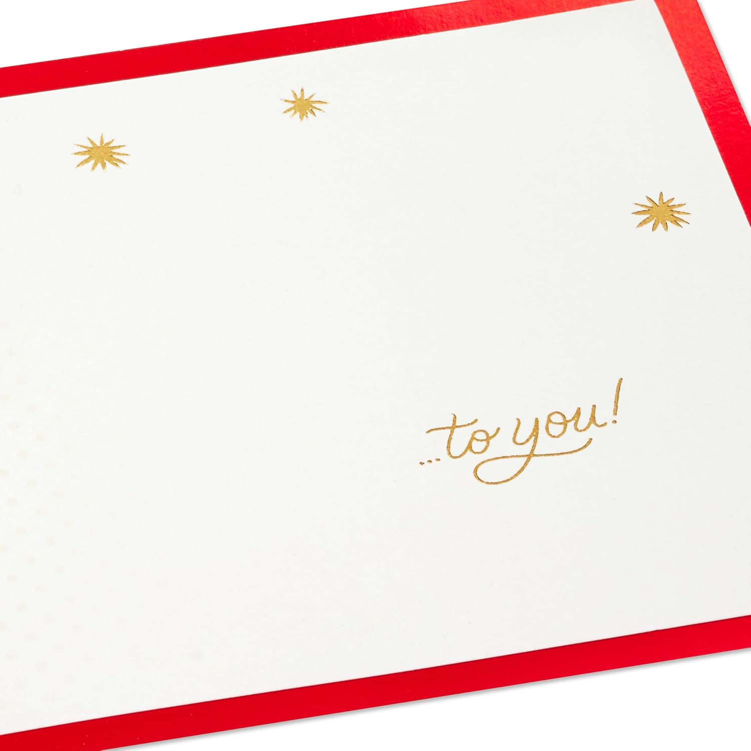 Celebrate a day that'll light up their Christmas with this amazing Hallmark Signature Paper Wonder Christmas card. The perfect way to make their day extra special with a 3D and pop up card they'll cherish. Bring all the joy to their celebrations with this awesome card. Open this card up to pop up a 3D display of a Christmas wreath design, and features a laser-cut design, and metallic red and gold foil details. This card is fully recyclable, and made of material from well-managed, FSC-certified forests and other controlled sources. Make their celebrations even better with enough space for a festive wish and fun message they'll love, and accompany it with our celebratory message 'Merry Christmas to you!', the perfect way to send all your festive greetings. 3D card measures 12.5cm x 34.4cm x 11.9cm, perfectly sized to display. This card is accompanied with a Hallmark branded, white envelope with gold foil lining. Flat card measures 11.9cm x 17.3cm, within UK 'Large Letter' Postage Size Limits.