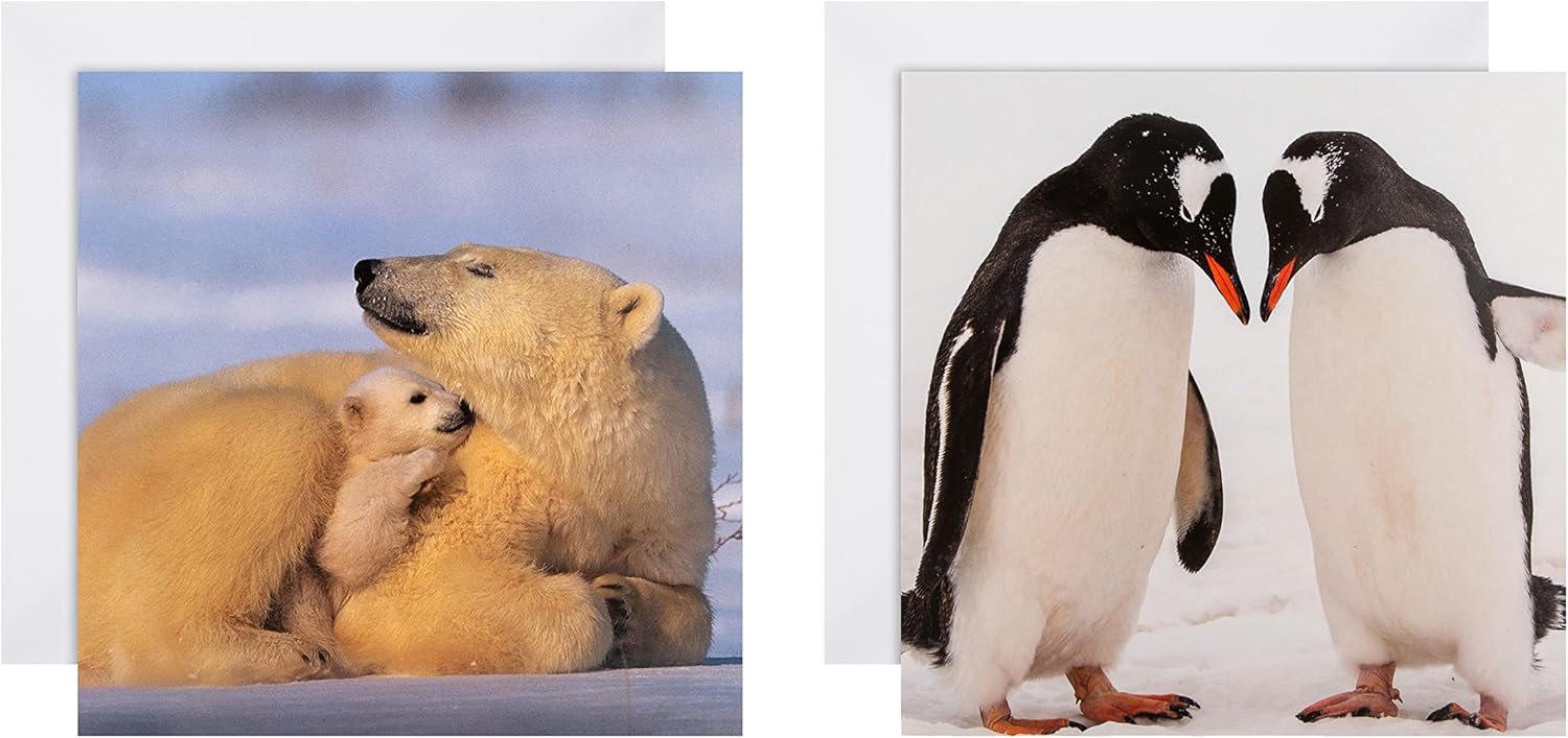 Bring in the love and get through the cold weather this festive season, with this 16 pack of National Geographic Christmas cards in 2 photographic designs, from Hallmark This product is fully recyclable, and made of material from well-managed, FSC-certified forests and other controlled sources Printed on high-quality board, these cards feature 2 designs with a gorgeous gloss finish on all cards and photography by Robert Harding and Norbert Rosing; message inside cards reads: Happy Christmas; the cards come complete with co-ordinating white, Hallmark branded envelopes Message On Back Of Cards and Box Reads: Your purchase has purpose. Every purchase helps support the global nonprofit National Geographic society in it's work to protect and illuminate our world through exploration, research, and education Cards Measure: 16 cm by 16 cm, within standard UK 'letter' size limit